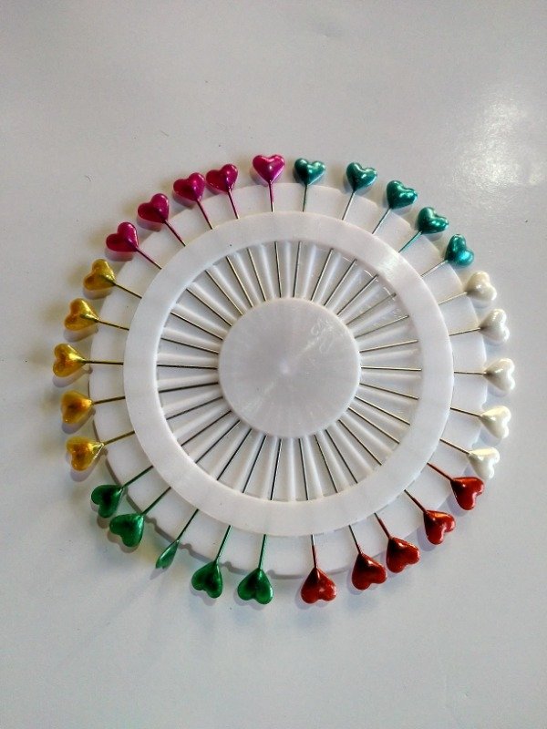 ALFILERES DECORADAS CON EXTREMO DE CORAZON, SON LARGAS. PRECIO POR RUEDA