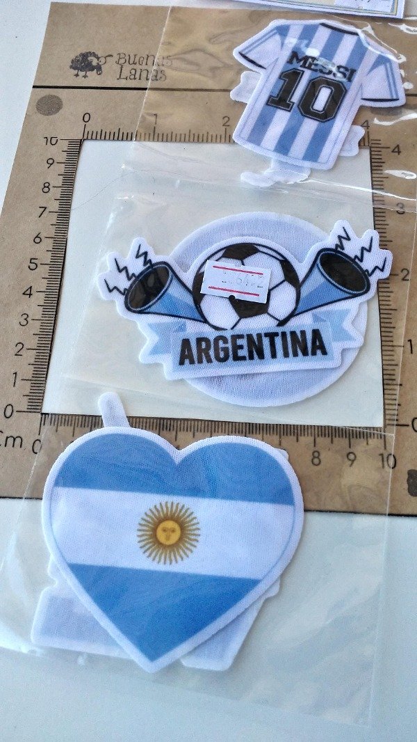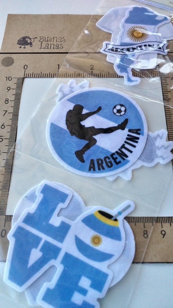 APLIQUE ESTAMPADO ARGENTINA SURTIDO GDE Medidas 6,8cm x 7,6cm. Precio por unidad