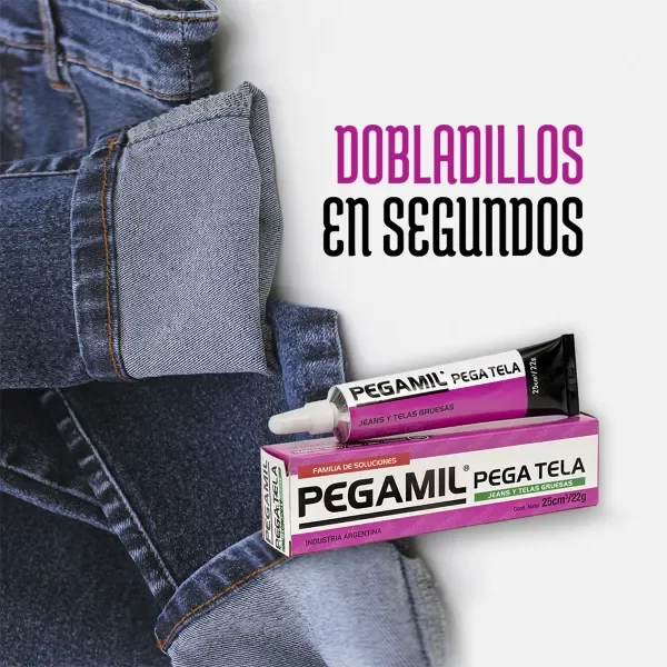 Para pegar jeans, dobladillos, cierres, escudos, cortinas pesadas, tapicería, carpas, lonas y otros tipos de telas gruesas. Adhiere fuertemente y resiste lavados y planchados. Pega en aproximadamente 5 minutos y alcanza su total resistencia en 4 horas. En días o ambientes húmedos puede demorar más. No adhiere plásticos ni telas sintéticas. No apto para telas finas o livianas.